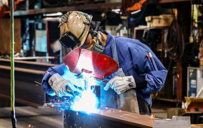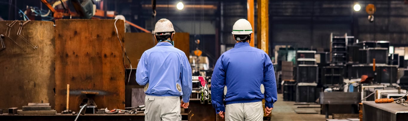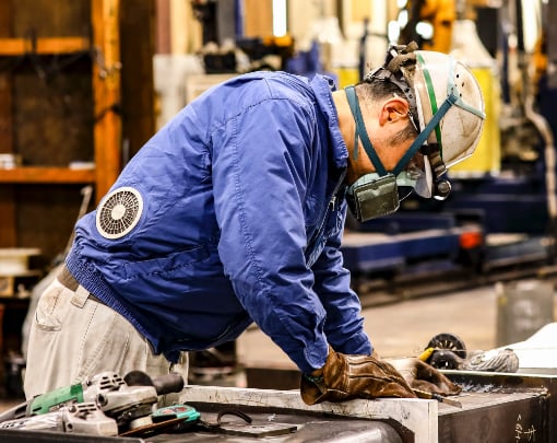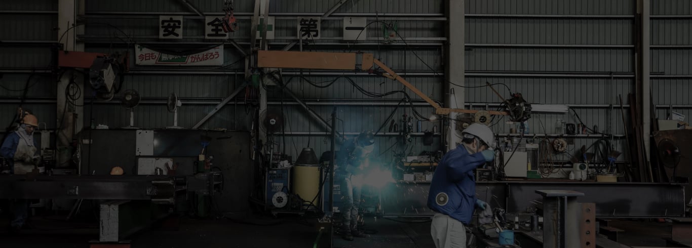 鋼材を搬入、加工し、鉄骨部材である柱と梁を組み立てます。品質・スピード・納期厳守を基本とし、各セクションごとにチームとなり技術を研鑽しています。