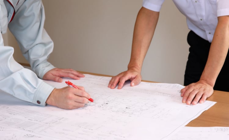 多種多様な建築ニーズに対応するために、鋼構造物専用アプリケーションを使用し一般図と詳細図を作成します。その後、現寸作業で拾い出した部品・部材を仕入れ、鉄骨製品を製作していきます。品質・スピード・納期厳守を実現する設備を積極的に導入し、信頼と実績を積み重ねています。